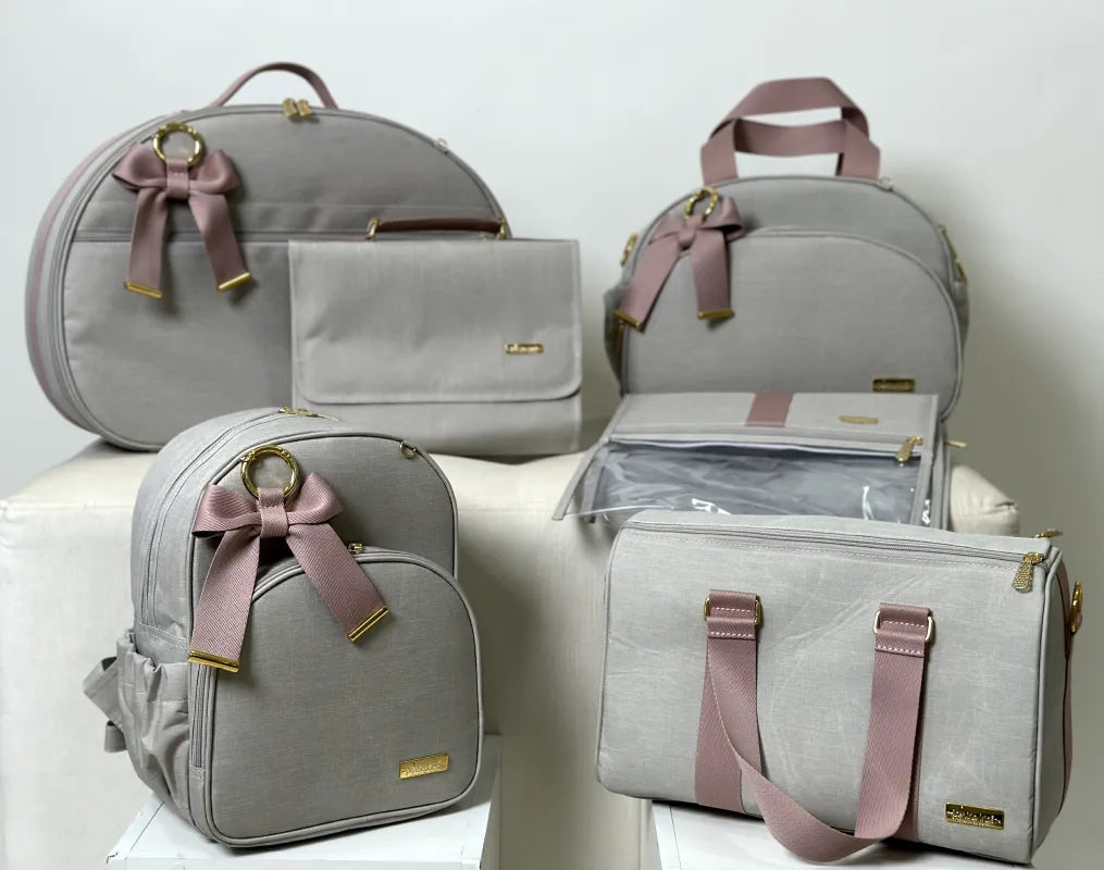 Kit Maternidade - Linho Bege com Fitas Rosê