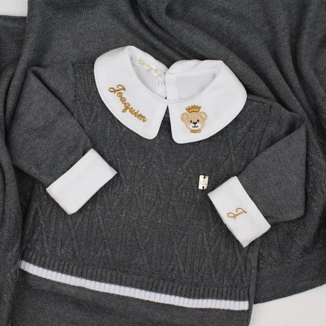 Saída De Maternidade Masculina Bebê Tricô Grafite